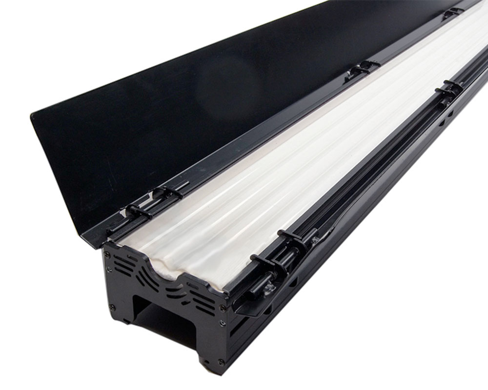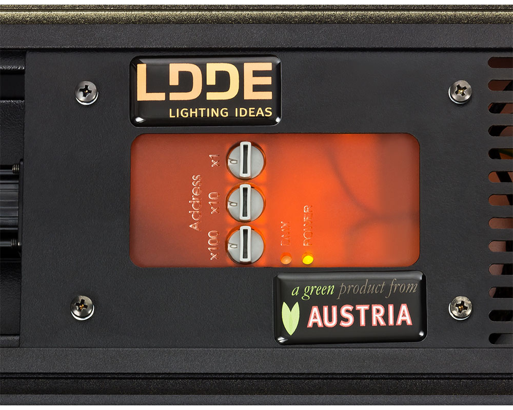 Its four interchangeable LED tubes integrated into the aluminum housing achieve a luminance of up to 4000 lumens per tube and guarantee a balanced light distribution. The luminaire is equipped with RGB colors and the color temperature 4000 K white as standard. If desired, the SpectraConnecT5 LED can also be equipped with white LED tubes in the color temperatures 2700 K and 6000 K as well as with various special colors (eg pink or UV light). In addition, the luminaire is characterized by a high degree of selective control quality in the entire range from 0 to 100%. Individual units can optionally be connected to one another via integrated standard or bayonet plug connections and allow a very rapid build-up.